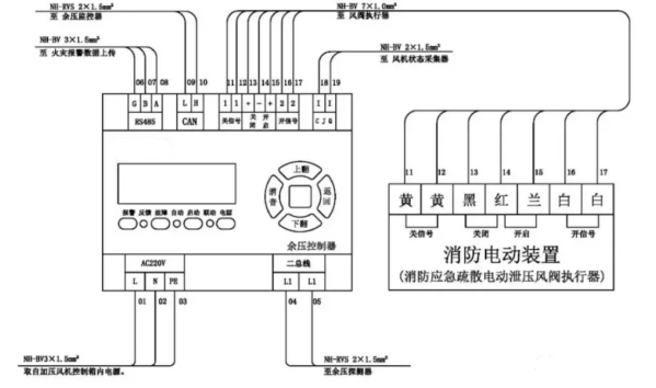 消防應(yīng)急疏散余壓控制器接線示意圖