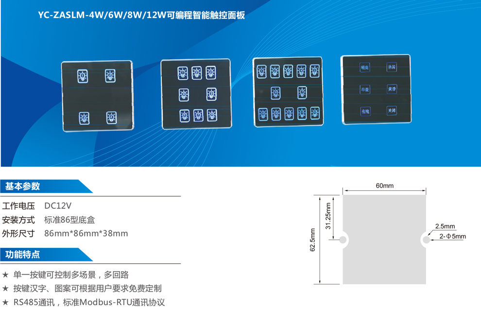 > YC-ZASLM-4W/6W/8W/12W可編程智能觸控面板